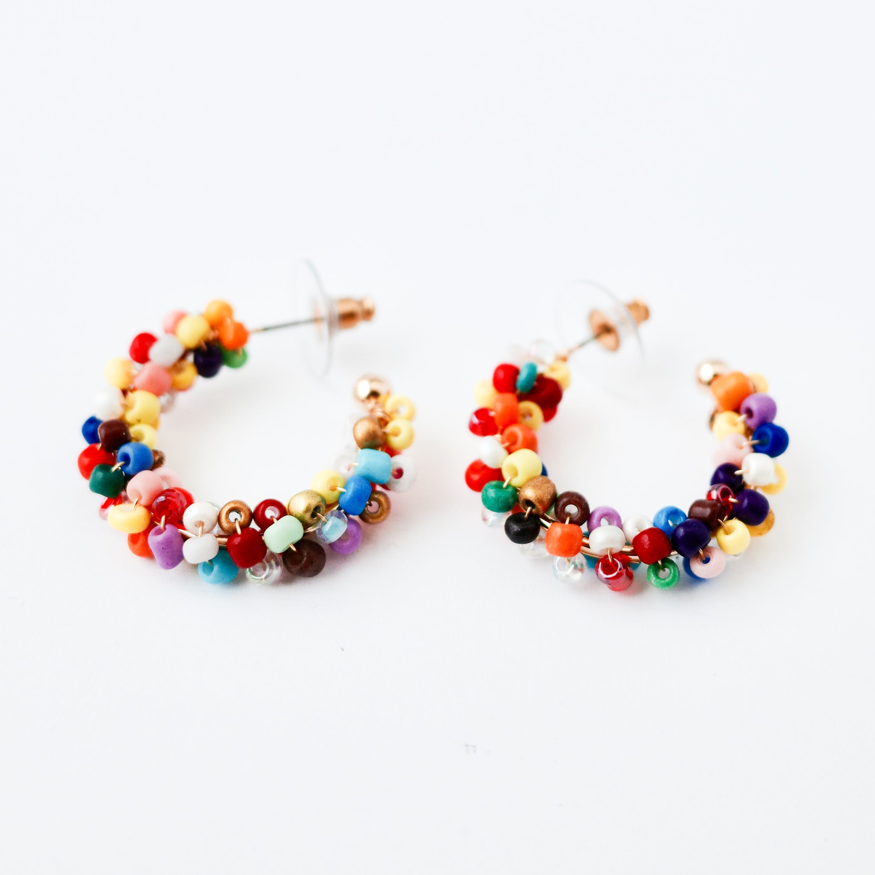 Add a joyful pop of color to your everyday look.These medium C-shaped hoop earrings are made with a vibrant mix of glass seed beads, creating a playful yet elevated statement....